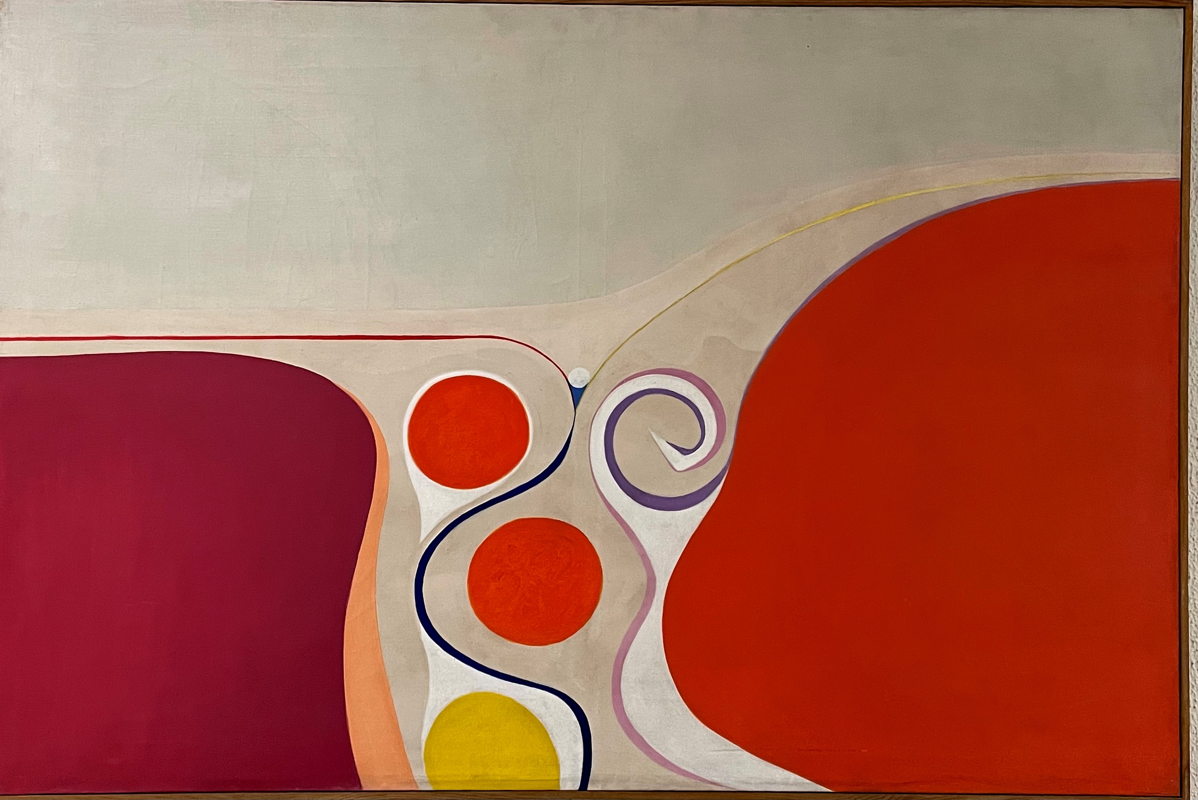 En esta pintura, que ingresó en la colección en 1971 tras haber sido expuesta en las salas del ICH junto a sus obras más recientes, María D’Avola combina formas orgánicas y geometrías curvilíneas en un equilibrio de tensiones y flujos visuales. Los planos de color —rojo, magenta, naranja y amarillo— se expanden con una energía contenida, mientras las líneas sinuosas trazan un movimiento que sugiere tránsito o conexión entre los espacios. La obra transmite una sensación de vitalidad y armonía, característica de la abstracción lírica. Donada en agradecimiento, el lienzo es un ejemplo del auge de pintores que se dedicaron a la abstracción en América Latina, un momento en que los artistas exploraban el lenguaje del color y la forma como medios de expresión autónomos. D’ Avola aporta una mirada personal y poética dentro de un entorno dominado por la geometría racionalista, proponiendo una versión más sensorial del arte abstracto. Hay pocos datos biográficos sobre esta pintora argentina, desconocida en España. El catálogo publicado por el ICH señala que nació en Buenos Aires y que ha ganado múltiples premios antes de exponer en Madrid. Estudió en la Escuela Nacional de Bellas Artes Prilidiano Pueyrredón, en el taller de la escultora Cecilia Marcovich, y cursó estudios de composición plástica con Héctor Cartier. En 1963 realizó un viaje de estudios y perfeccionamiento a Europa, recorriendo Francia, Italia y España donde entró en contacto con el Instituto de Cultura Hispánica y el Colegio Mayor Nuestra Señora de Guadalupe donde residió a finales de la década de los sesenta. Su obra, se ubica dentro de la tendencia informalista, caracterizada por la riqueza matérica y la sobriedad cromática, tal como señala María Laura San Martín en Inmigración y Plástica. Representante clave de la abstracción moderna argentina de los años sesenta, María D’ Avola desarrolló un lenguaje plástico de profunda sensibilidad personal, con obras presentes en el Museo de Arte Moderno de Buenos Aires y en el Museo de Arte Contemporáneo de la Plata (MACLA). © Foto. M. Blanco. Portada e interior del catálogo de la exposición, marzo 1971. ICH. Para más información consultar el catálogo: Blanco Conde, Mª. (2016). Catálogo de la colección artística de la Agencia. AECID. Disponible en línea.
